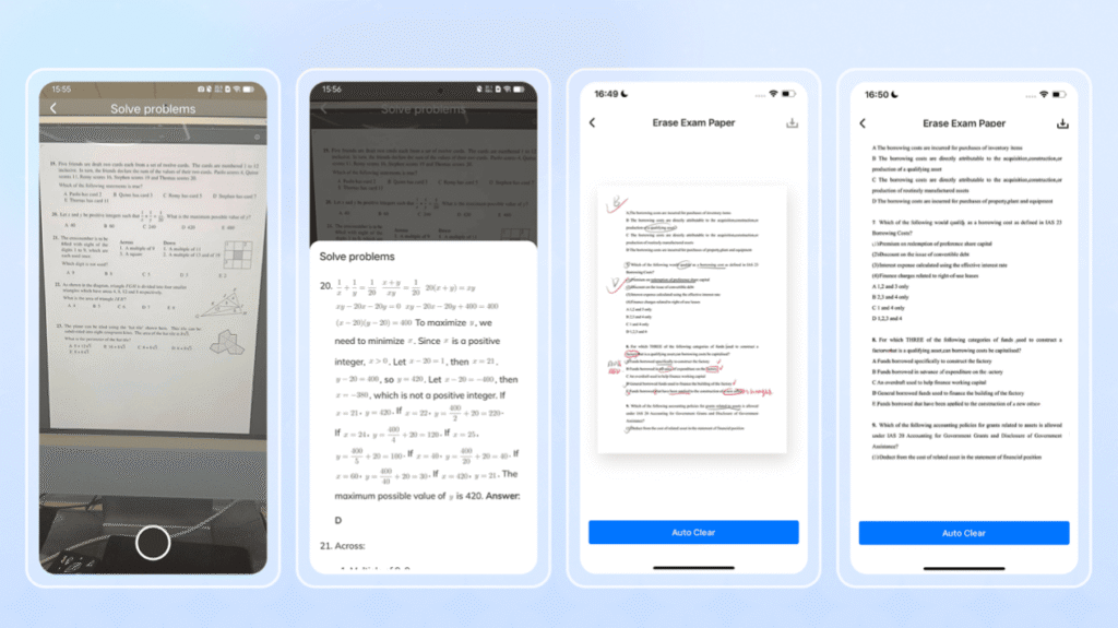 Borrado de exámenes escritos a mano: ¿Quieres reutilizar los mismos exámenes para practicar? Con Borrado de exámenes escritos, puedes eliminar con un toque las anotaciones y recuperar una hoja en blanco, ideal para repetir ejercicios, corregir errores y repasar antes del examen.