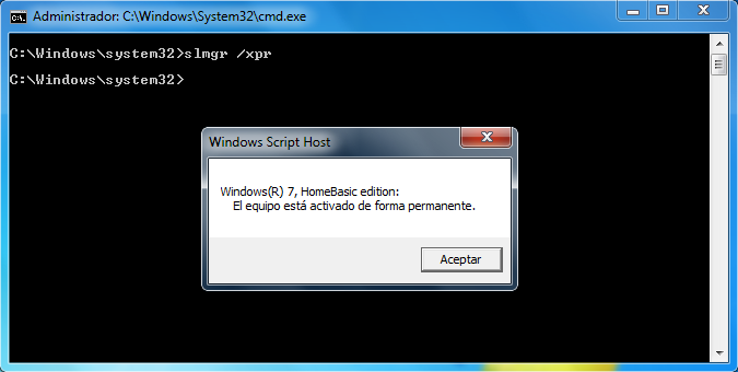 Después de eso, ejecutar el comando slmgr junto con el parametro /xpr.
