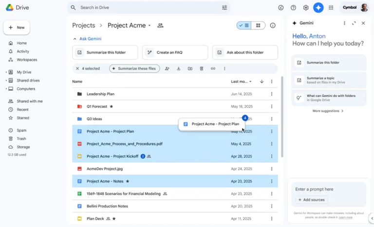 Para aprovechar esta novedad, solo necesitas escribir tu consulta en el panel lateral de Gemini —esa ventana de chat que ya estaba integrada en Drive, Documentos, Presentaciones, Hojas de cálculo, Gmail y Google Chat...