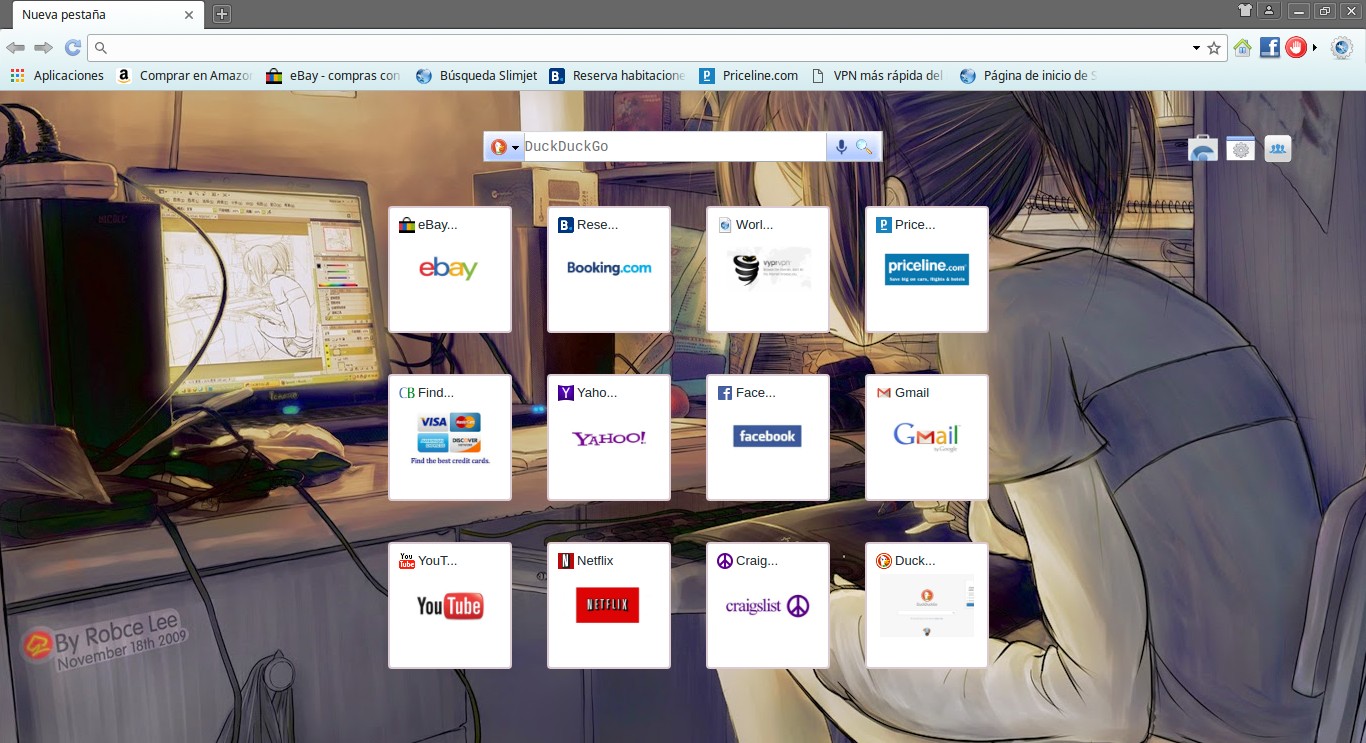 SlimJet le permite personalizar la página de inicio; eligiendo color, imagen o vídeo como fondo de página.