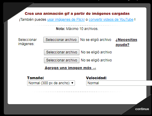 Una vez cargada las imágenes, procedemos a configurar nuestro GIF animado.